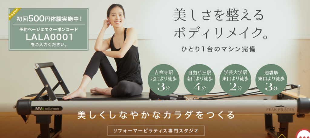理学療法士監修のパーソナルレッスン専門のマシンピラティススタジオです。