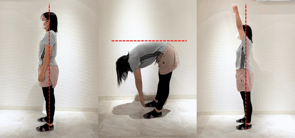 前屈した時に背中に丸みが出て、床に手がつくように!
