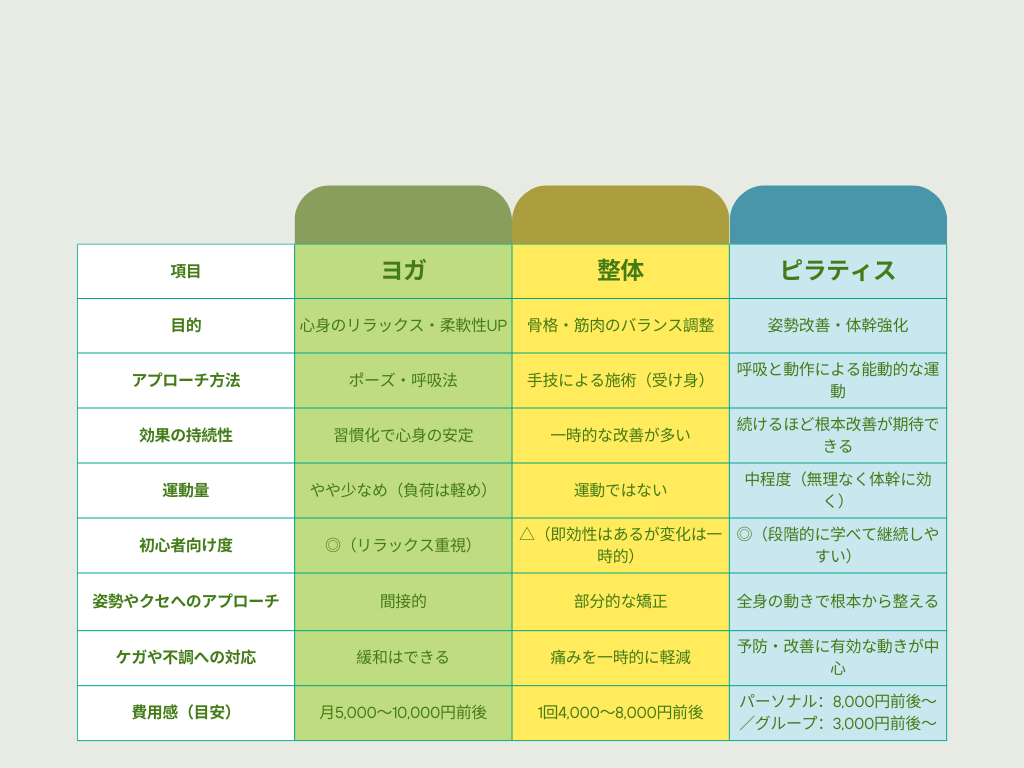 「名前は聞いたことあるけど、どんな運動?」「ヨガや整体とどう違うの?」